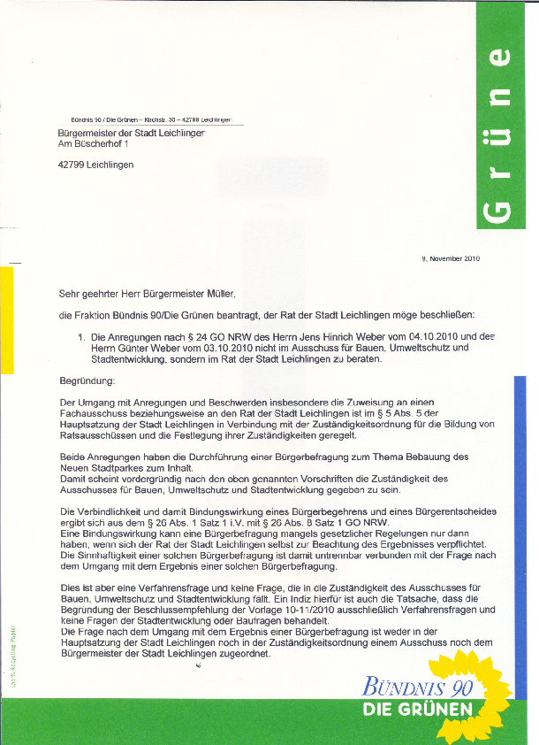 die Leichlinger Grünen unterstützen die Anregungen nach § 24 Gemeindeordnung NRW der Herren Weber zur Durchführung einer Bürgerbefragung.